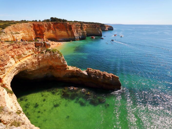 What stood out most to me was Baixo Alentejo. The region has space, silence and a slower rhythm. In places like Serpa, Mértola and Castro Verde, the whitewashed streets, old castle walls and open views create a calm but very photogenic atmosphere. The contrast with the Algarve is striking. Along the coast, at Benagil, Salema and near Faro, the landscape becomes brighter, wider and more open, with limestone cliffs, turquoise water and strong Atlantic light.